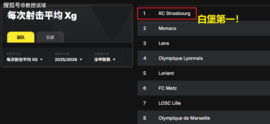 最可怕的是他们的效率。斯特拉斯堡平均每次射门的预期进球值(xG)高达0.17,这项数据再次冠绝欧洲五大联赛。