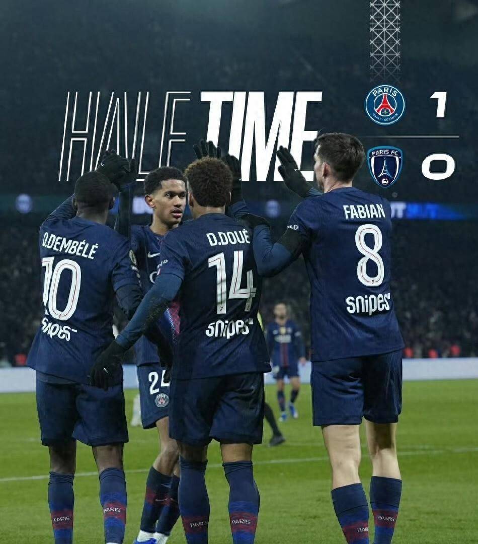 巴黎圣日耳曼与巴黎FC的比赛在北京时间1月5日凌晨率先打响。 主队排出了熟悉的4-3-3阵型,登贝莱、杜埃、维蒂尼亚等核心球员首发出战。 从纸面实力上看,巴黎圣日耳曼远超对手。
