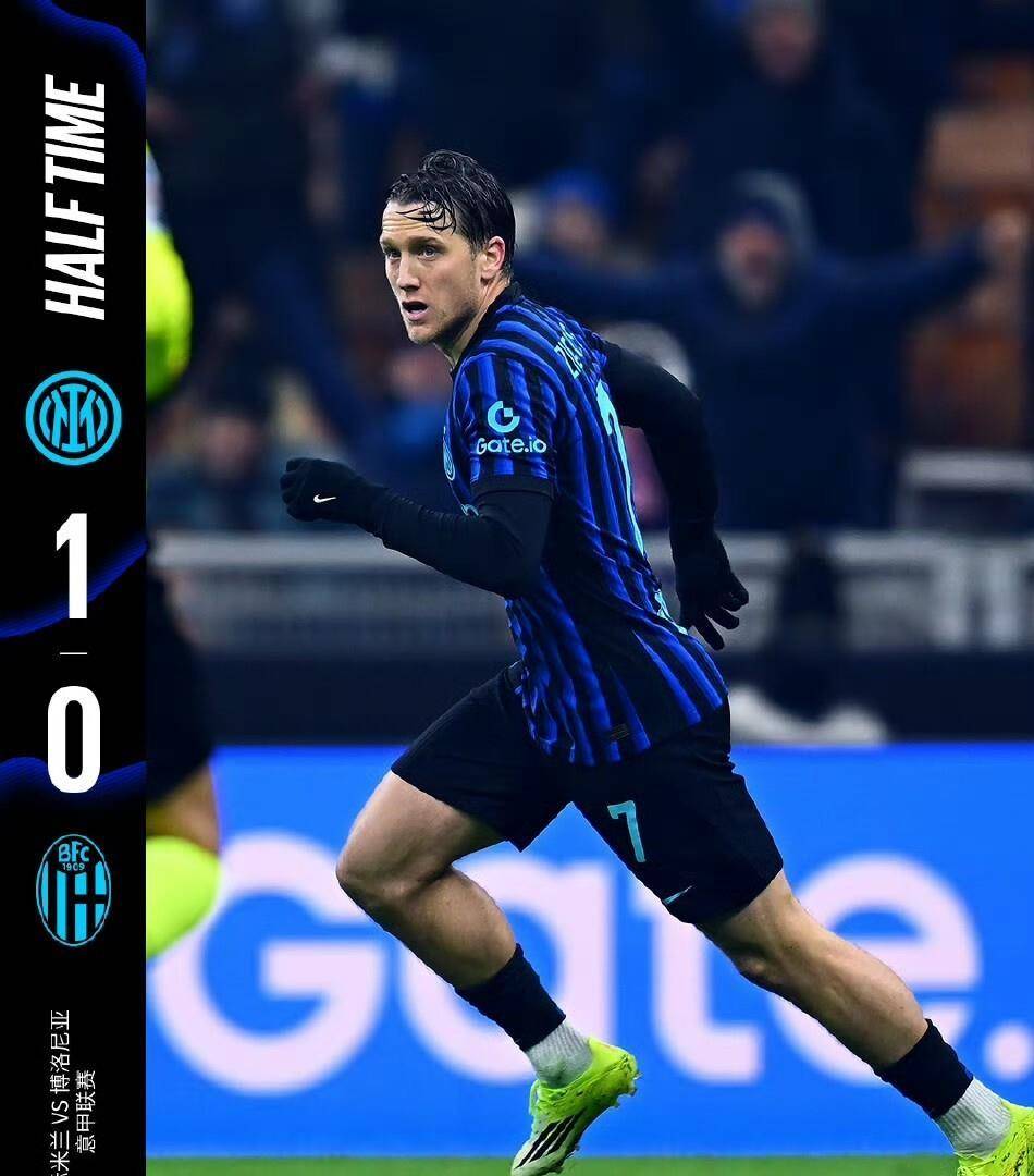 从比赛第一分钟开始,国际米兰就完全掌控了场上局势。 博洛尼亚门将拉瓦利亚成为了上半场最忙碌的人,他先后扑出了劳塔罗·马丁内斯和马库斯·图拉姆颇具威胁的射门。 然而,他的出色发挥未能阻止球队失球。 第39分钟,国际米兰在中场组织进攻,泽林斯基在禁区外接到队友分球,稍作调整后起左脚轰出一记世界波,皮球直挂球门死角。 这粒进球也是国际米兰团队在2026年打入的首粒正式比赛进球。