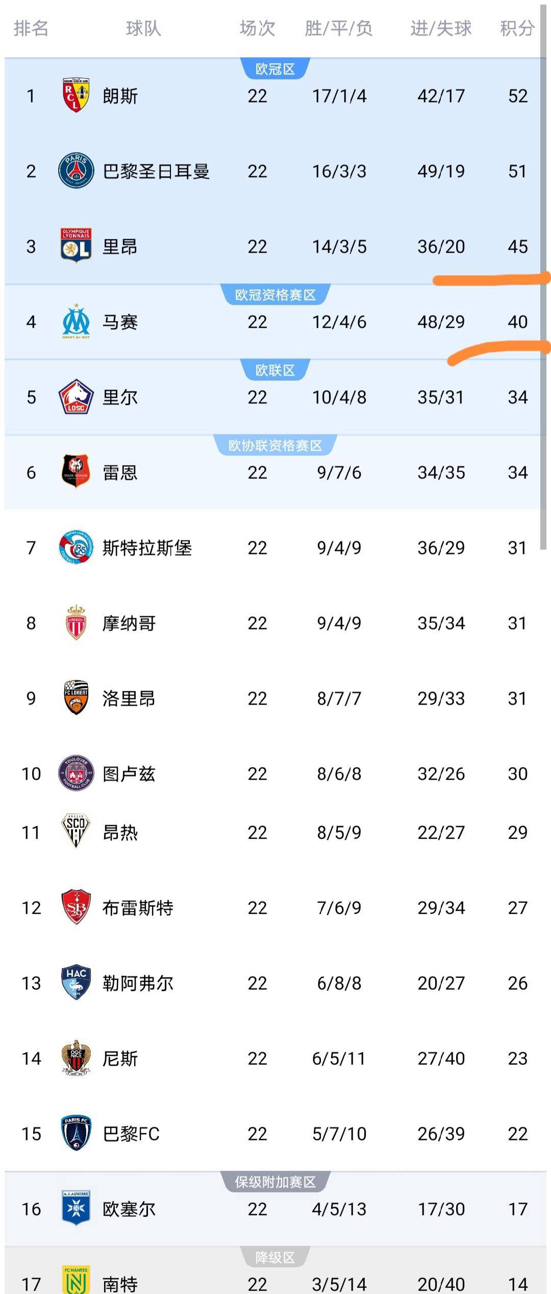另外一场备受瞩目的比赛中,欧塞尔客场3比1战胜梅斯,欧塞尔积分提升至17分,距离安全线分优势,极大增强了球队的保级信心。反观梅斯持续低迷,以13分继续垫底,保级压力沉重。至于里昂与尼斯之间的较量,里昂凭借出色发挥2比0击败尼斯,积分迅速攀升至45分,稳稳占据第三的位置。而尼斯输球后积23分,排在第14位,排名有所下滑。