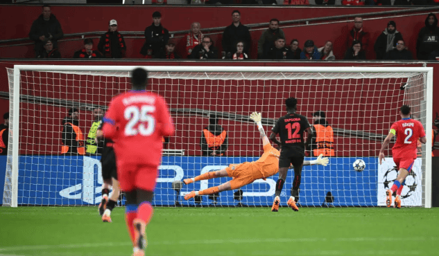 勒沃库森本有机会在第 25 分钟扳平比分。第 23 分钟,扎巴尔尼(巴黎中卫)在禁区内与科法内对抗时摔倒,手臂不慎碰到皮球,主裁判曼萨诺果断判罚点球,并向扎巴尔尼出示黄牌。勒沃库森由格里马尔多(30 岁,球队定位球主罚手)主罚点球,他助跑后选择推射右侧,皮球却击中右立柱弹出底线!这一失误成为比赛的 “第一个转折点”—— 格里马尔多在罚丢点球后,情绪明显低落,防守端的回防速度也有所下降;而巴黎球员则士气大振,进攻节奏明显加快。