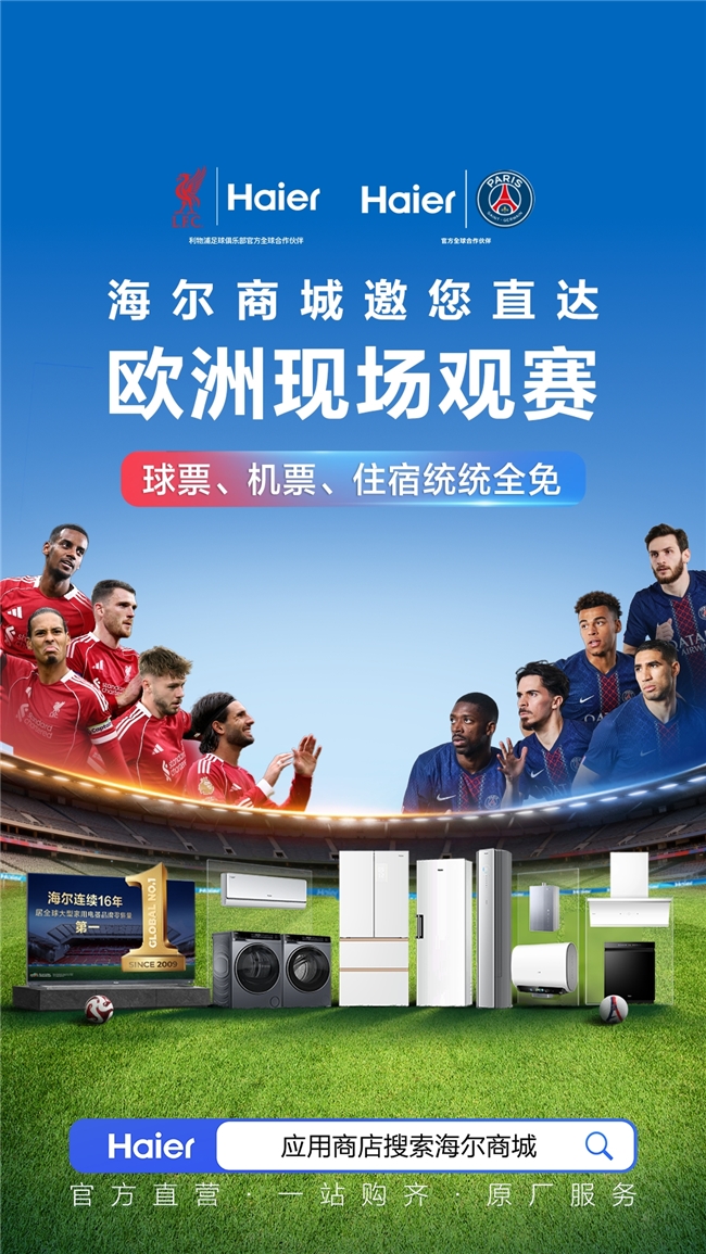 与顶级体育IP的深度合作,让用户的消费决策超越了单纯的功能需求,而成为一种情感共鸣与价值认同,为传统家电营销注入新的活力。而且,海尔商城还为用户拿出了实实在在的福利:参与中国女排同框活动,即可抽取排球、钥匙扣、帆布包等联名周边好礼;活动期间,注册并登录即可抽取“利物浦俱乐部官方足球周边”,购买冠军科技产品更有机会获得“3人欧洲观赛游”超级大奖,机票、酒店、球票统统全免!