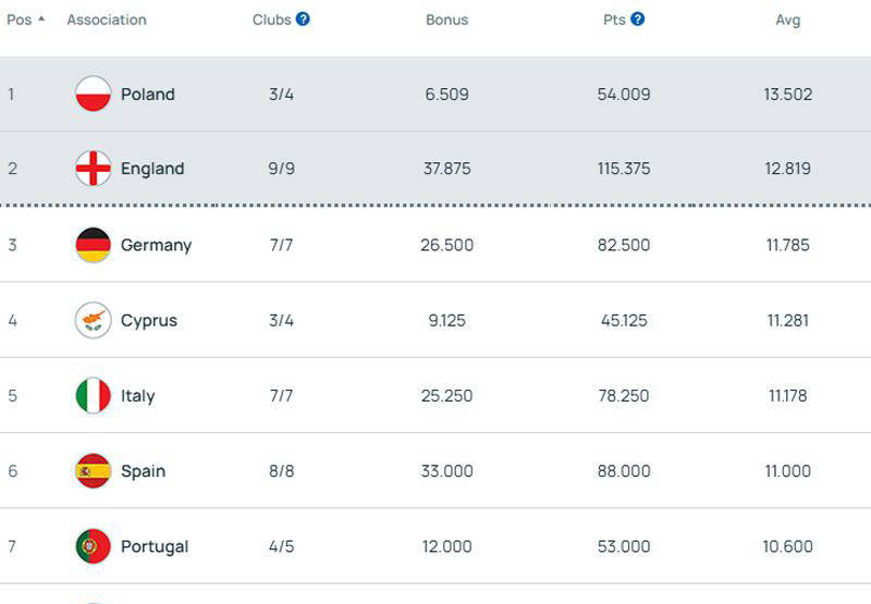 从欧洲足联最新积分榜来看,英超与波兰联赛暂居前列,德甲、意甲、西甲及法甲则紧随其后。值得注意的是,波兰联赛参赛的三支球队均参与欧协联,其中一队直接晋级16强,两队需打附加赛。随着赛事的深入及欧冠球队加分权重较大,波兰的排名预计会快速下跌。本赛季欧冠积分规则有所调整,给予前列球队不同程度的积分奖励,这无疑对英超豪门保持强势极为关键,一旦联赛结束,英超多支队伍将凭借积分优势获得更多欧洲赛场席位。