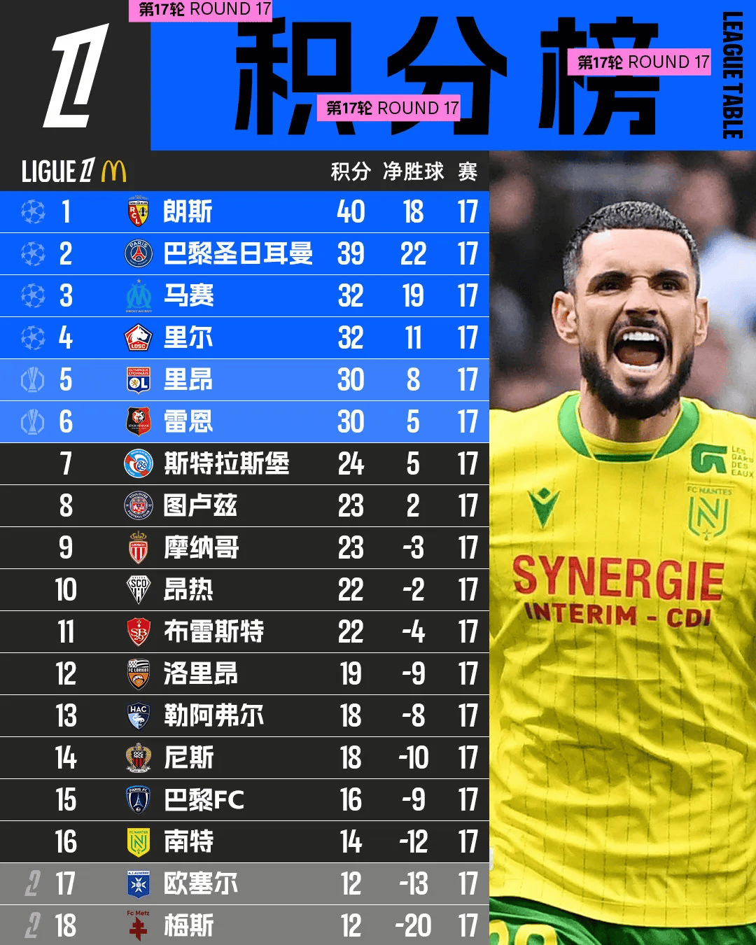 法甲直播,法甲赛程,法甲积分榜,巴黎圣日耳曼直播,法甲比分预测/专为中文用户打造的法甲资讯平台,聚焦2025赛季赛程、直播入口、积分榜与巴黎圣日耳曼焦点比赛,提供每日竞彩预测、波胆推荐及实单分析。在巴黎圣日耳曼以雄厚财力长期主导的法甲联赛,争冠悬念似乎总被提前消解。然而,本赛季的积分榜却呈现出一幅令人惊叹的景象:一支全队总身价仅约1.1亿欧元的球队,正力压身价高达11.9亿欧元的大巴黎,稳坐联赛头把交椅。这支球队,就是来自法国北部矿区的朗斯。