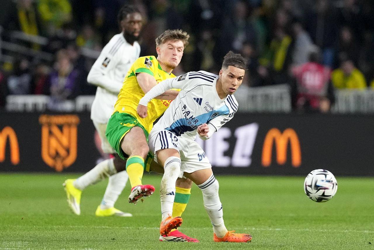 下半场第5分钟,姆万加妙传,22岁法国悍将阿布林利剑出鞘帮助南特队扳平比分。
