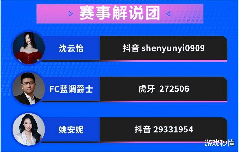 本次赛事的解说阵容同样星光璀璨,沈云怡、FC蓝调爵士与姚安妮三位解说界的佼佼者将组成黄金解说团。他们将带领观众深入分析每一场比赛的战术布局,分享精彩瞬间,幽默风趣的风格更是让这场赛事更加引人入胜。电竞与足球的魅力在他们的解说下愈发鲜活。