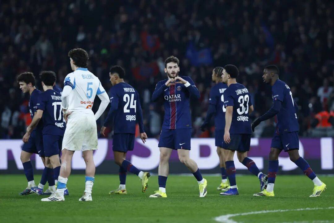第64分钟梅迪纳的乌龙是马赛泄气的标志,而第66分钟克瓦拉茨赫利亚接登贝莱挑传后的4比0精彩凌空,则是完美的锦上添花。最后,替补出场的李刚仁再入一球,5比0,马赛球员到这个时候已经只剩盼着比赛早点结束了。
