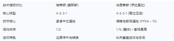 大卫·莫耶斯在2025年重掌埃弗顿帅印后,迅速将球队调校回他最为擅长的战术频道:纪律性极强的中位逼抢、稳固的防守架构以及极高效率的进攻转换 。埃弗顿本赛季至今仅丢28球,这一防守数据在英超位列第四,充分证明了莫耶斯对防线改造的成功 。