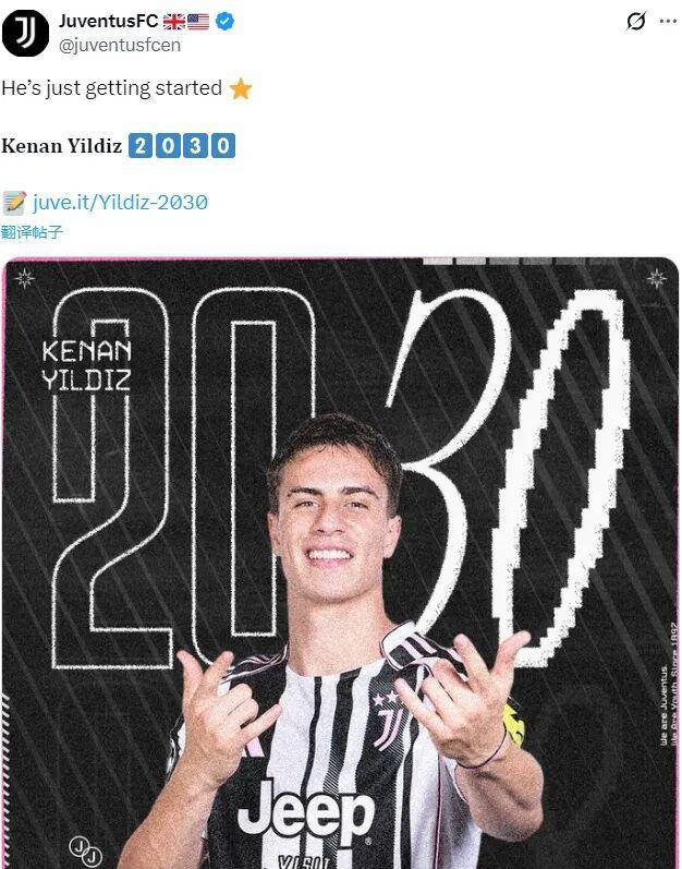 尤文图斯官方宣布,与年轻天才伊尔迪兹完成续约,合约延长至2030年。伊尔迪兹自2022年从拜仁加盟后,本赛季已在31场比赛贡献9球8助攻。有消息称,续约后的税后年薪达到600万欧元。